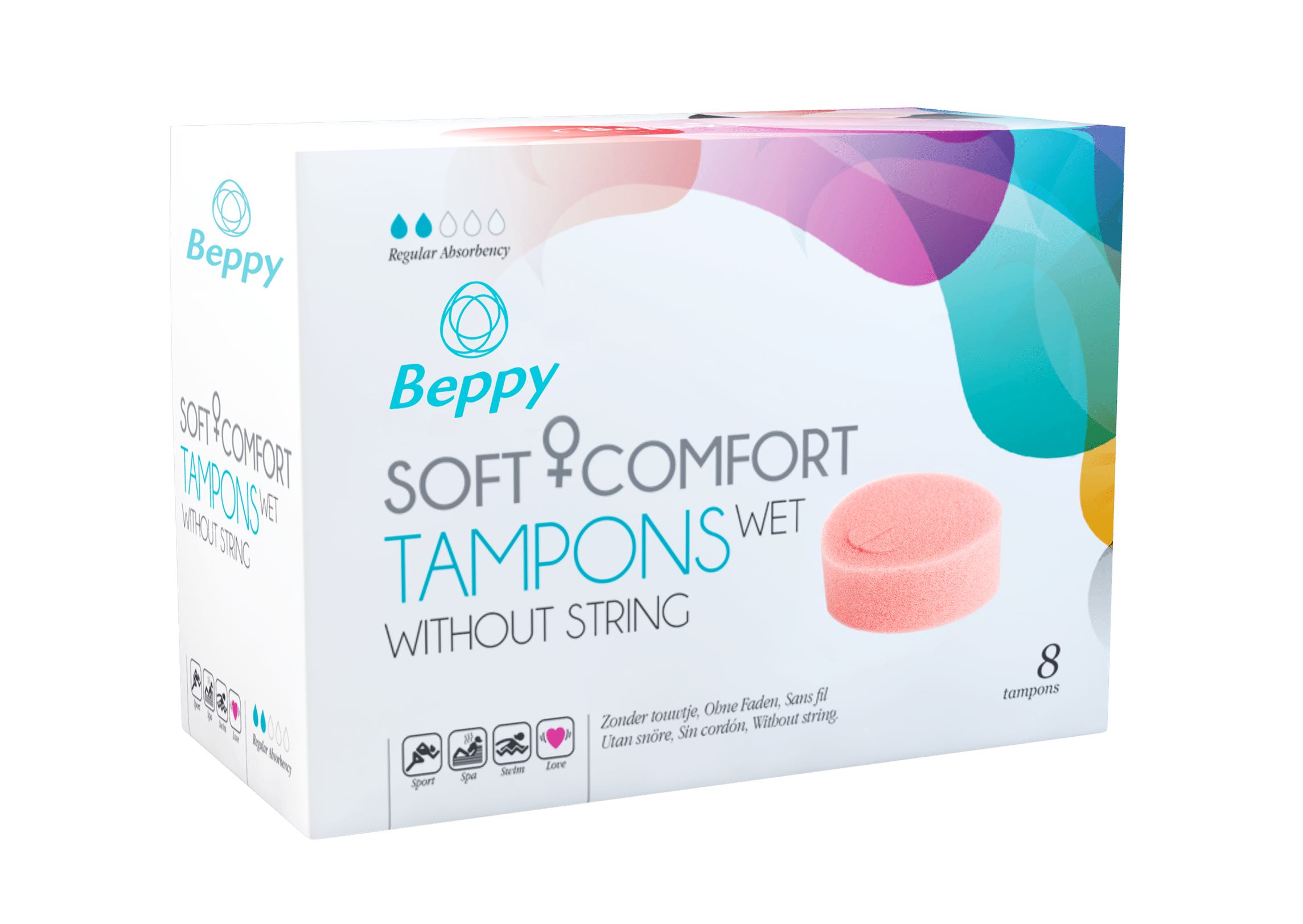 The Beppy tampon is a soft, flexible sponge that you wear inside during your period. The tampon offers extra comfort and always fits well because the tampon adapts itself to the shape of your body.