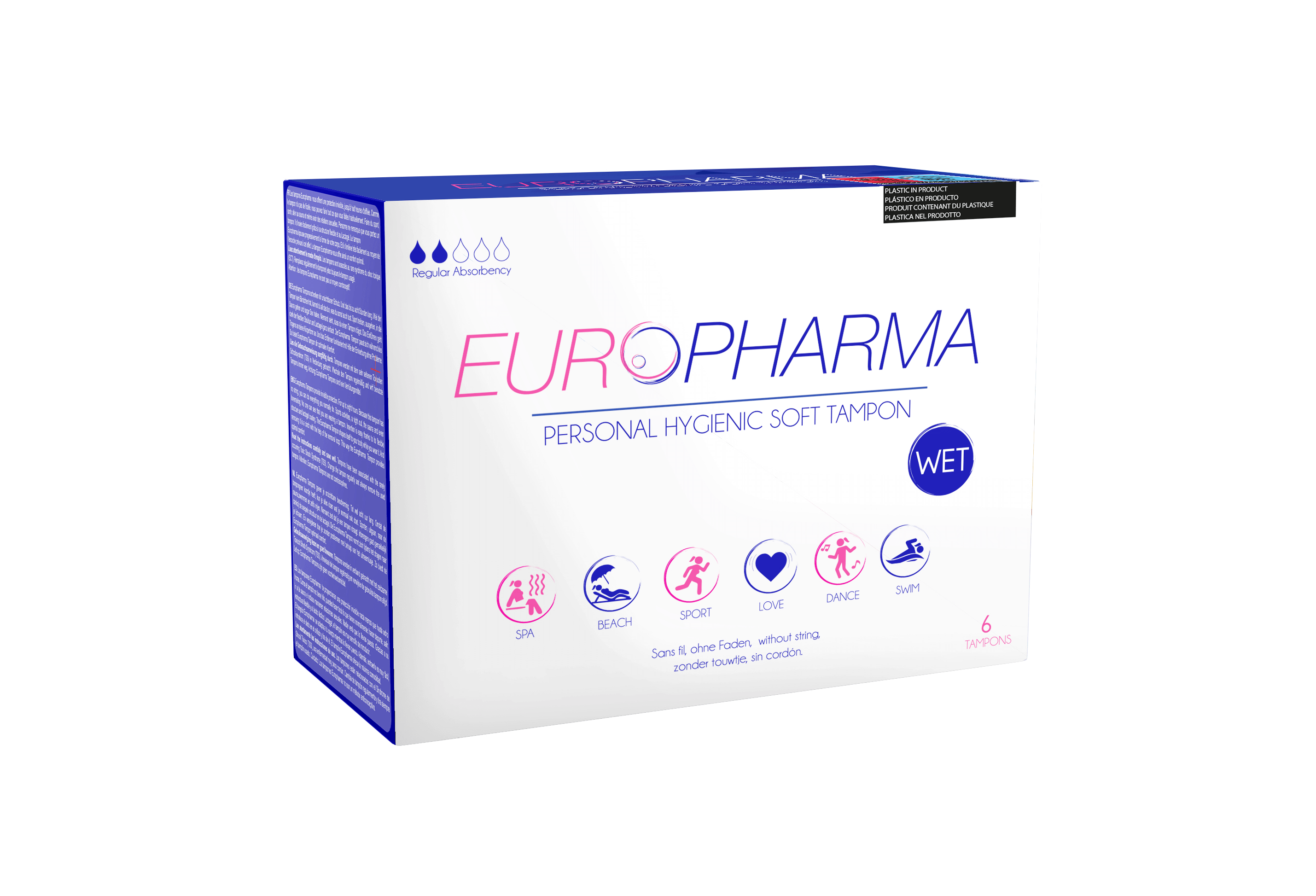 Europharma tampons zijn voorzien van een natuurlijke gel én een uitneemlusje, waardoor de tampon eenvoudig is in te brengen en te verwijderen (zacht sponsje). Het vernieuwde design heeft een geïntegreerd uitneemlusje én is daardoor beter voor het mileu! Verpakt per 6 stuks in een mooie kartonnen verpakking met bijsluiter. Met Europharma tampons kun je discreet sporten, zwemmen, dansen en seks hebben tijdens de menstruatie.