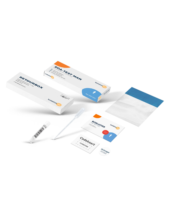 Met deze uiterst betrouwbare SOA-laboratoriumtest test je jezelf op de twee meest voorkomende SOA’s: Chlamydia en Gonorroe. Met de Openlab SOA-test Anaal heb je alles in huis om jezelf te testen. Doordat lichaamsmateriaal in ons CCKL-gecertificeerde laboratorium wordt geanalyseerd, is de test net zo betrouwbaar als die van de huisarts of GGD.Aan de hand van je eigen anonieme code kan je binnen 48 uur (na ontvangst in ons lab) je uitslag opvragen. De uitslag bestaat uit een rapport waarbij details over bevindingen en analyse beschreven worden. Vraag je uitslag anoniem op via openlab.nl/uitslag. Met de Openlab SOA-test Vrouw test je op Chlamydia en Gonorroe. De test is op DNA gebaseerd en is net zo betrouwbaar als de test van huisarts en GGD. Analyse vindt plaats in ons CCKL-geaccrediteerd laboratorium en beoordeling van de uitslag wordt verzorgd door een arts-microbioloog. De test is gebaseerd op zelfafname en laboratoriumanalyse. Zo neem je zelf een vaginale swab af, label je het transportbuisje met je eigen code die je vindt op de codekaart en kan je dit terugsturen in de retourbox, waarna wij de analyse starten in ons laboratorium.De test wordt discreet verzonden en klantgegevens worden na 14 dagen uit onze database verwijderd. Meer informatie over de Openlab SOA-test voor vrouwen vind je in de bijsluiter. Deze kan je ook downloaden (rechtermuisknop > opslaan als). Houd rekening met incubatietijden. Testen voordat de incubatietijd is verstreken heeft geen zin.