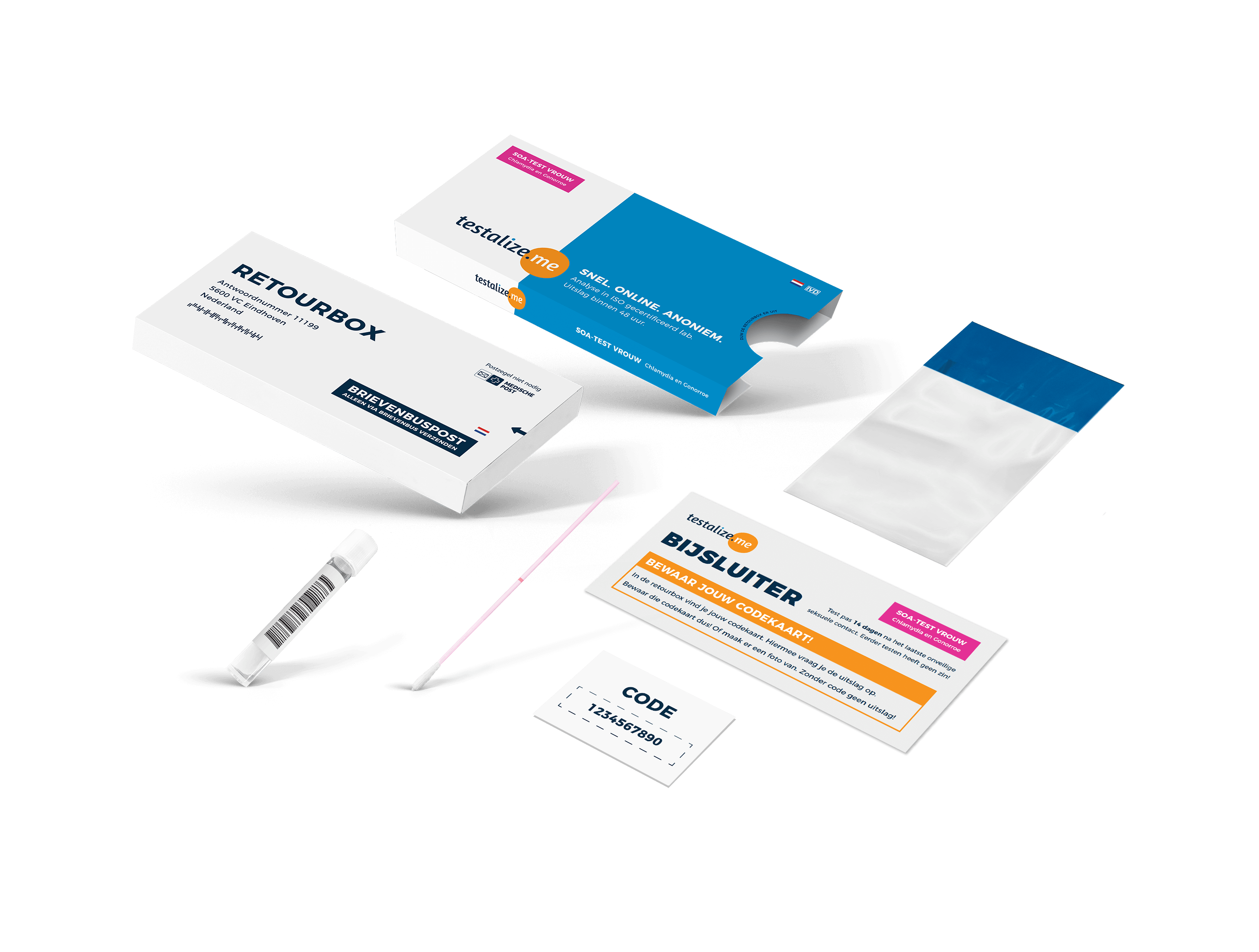 Een vaginale test op Chlamydia en Gonorroe. Analyse in lab. Vraag binnen 48 uur na ontvangst zelf de uitslag op. Gratis discreet verzonden.